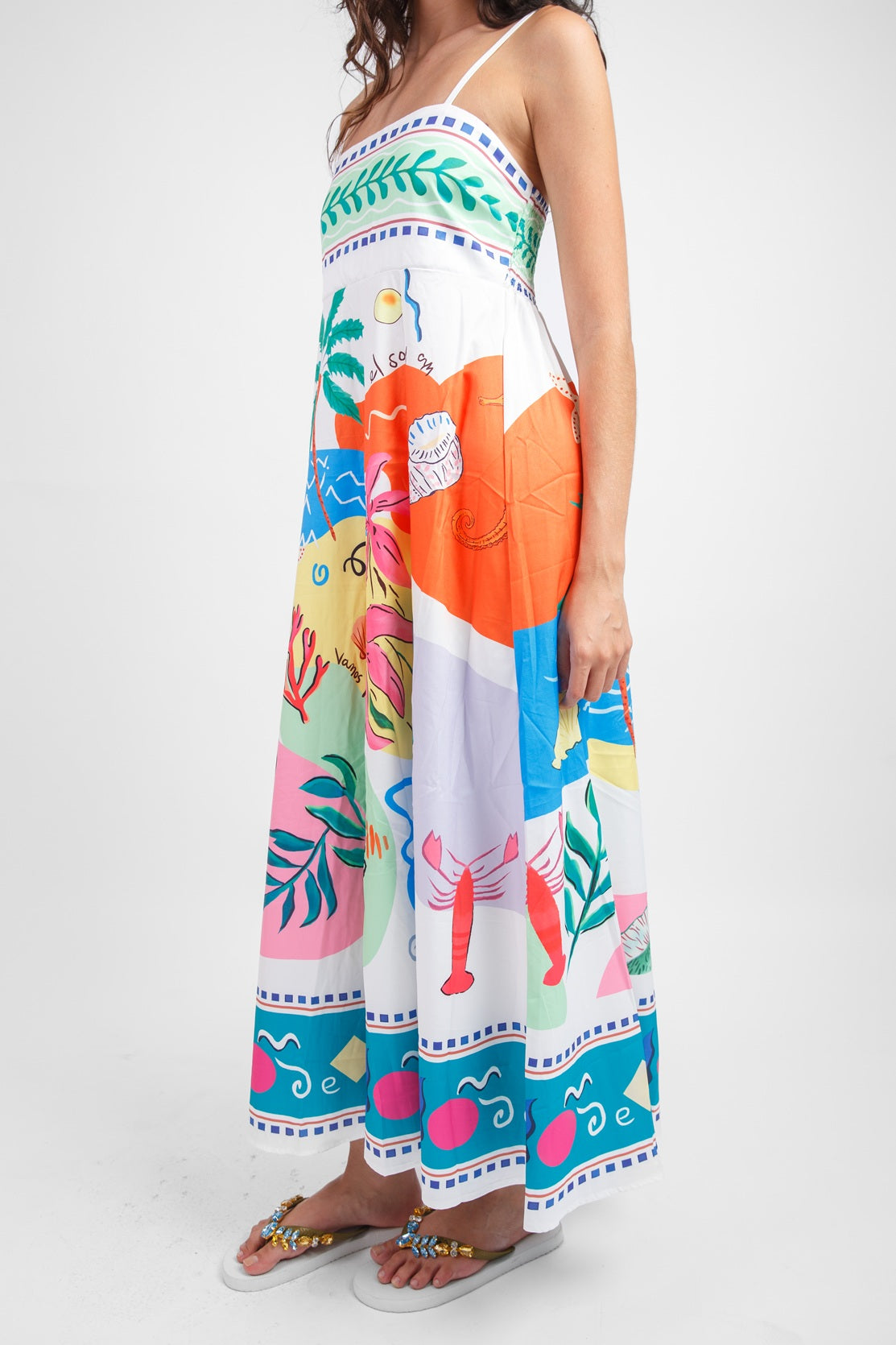 The Palm Dress is made from soft, breathable cotton for all-day comfort. Featuring a vibrant palm-inspired print, it brings a fresh, tropical vibe to your look—perfect for sunny outings or vacation days