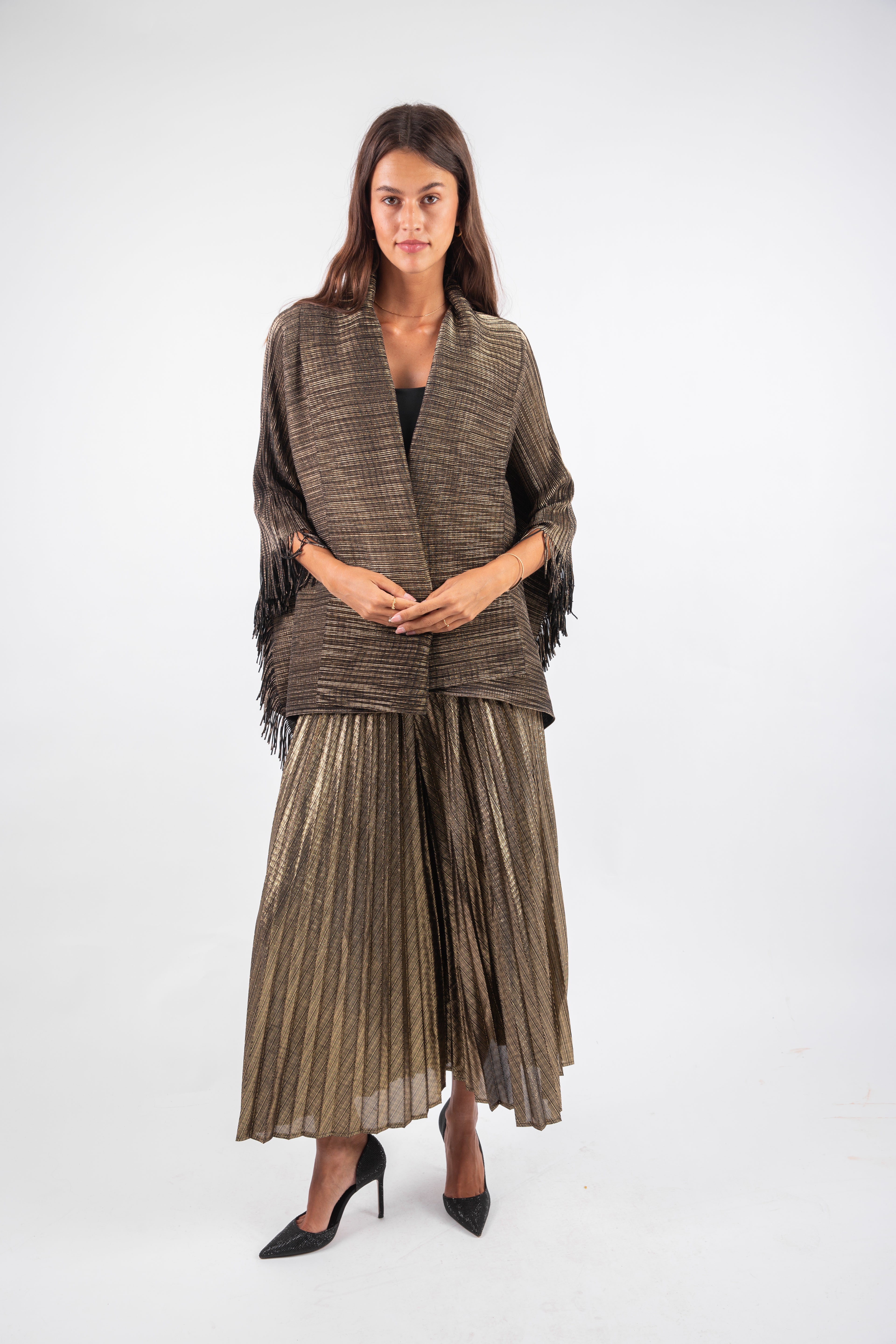 The Ripple Set is crafted from lightweight plissée, offering a textured flow and a smooth finish. Its distinct surface and effortless drape make it a standout in easy styling.