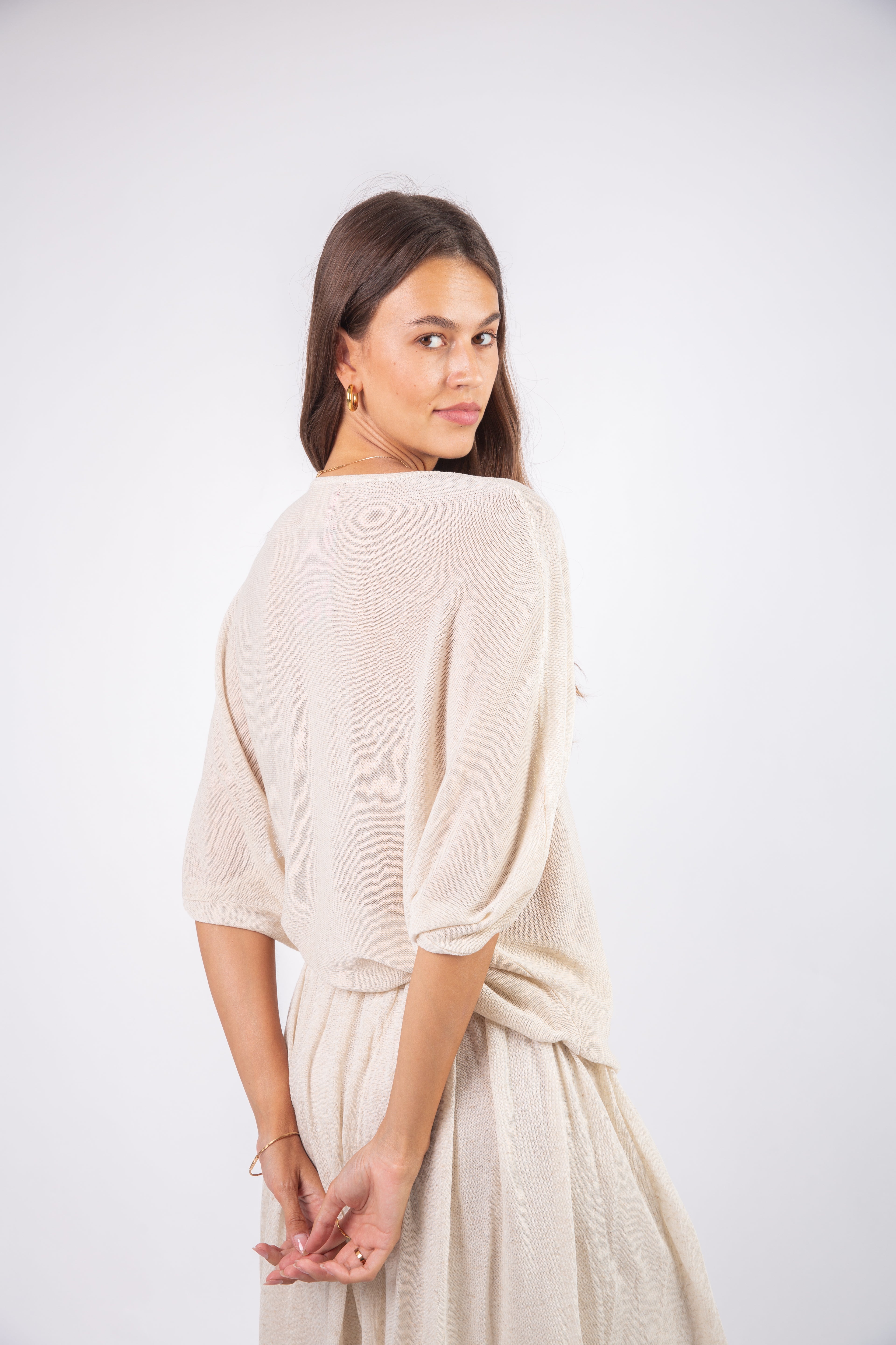 The Shell Set is made from soft knitted fabric, offering a cozy feel with a textured finish. Its gentle structure and snug touch make it a perfect blend of comfort and style.