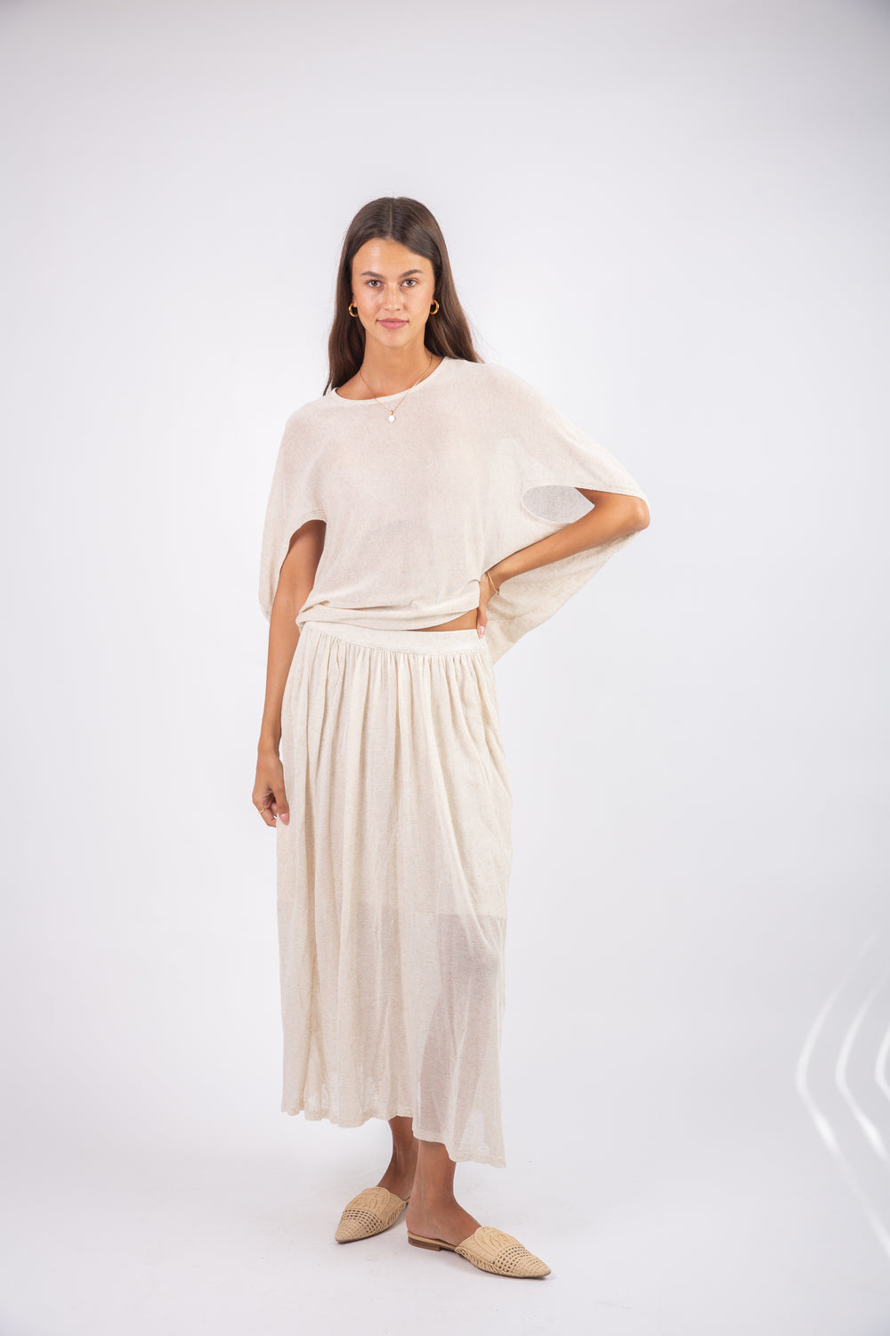 The Grid Skirt is crafted from a blend of denim and cotton, combining structure with softness. Featuring subtle paneling and a clean-lined design, it offers a modern, edgy look with everyday comfort.