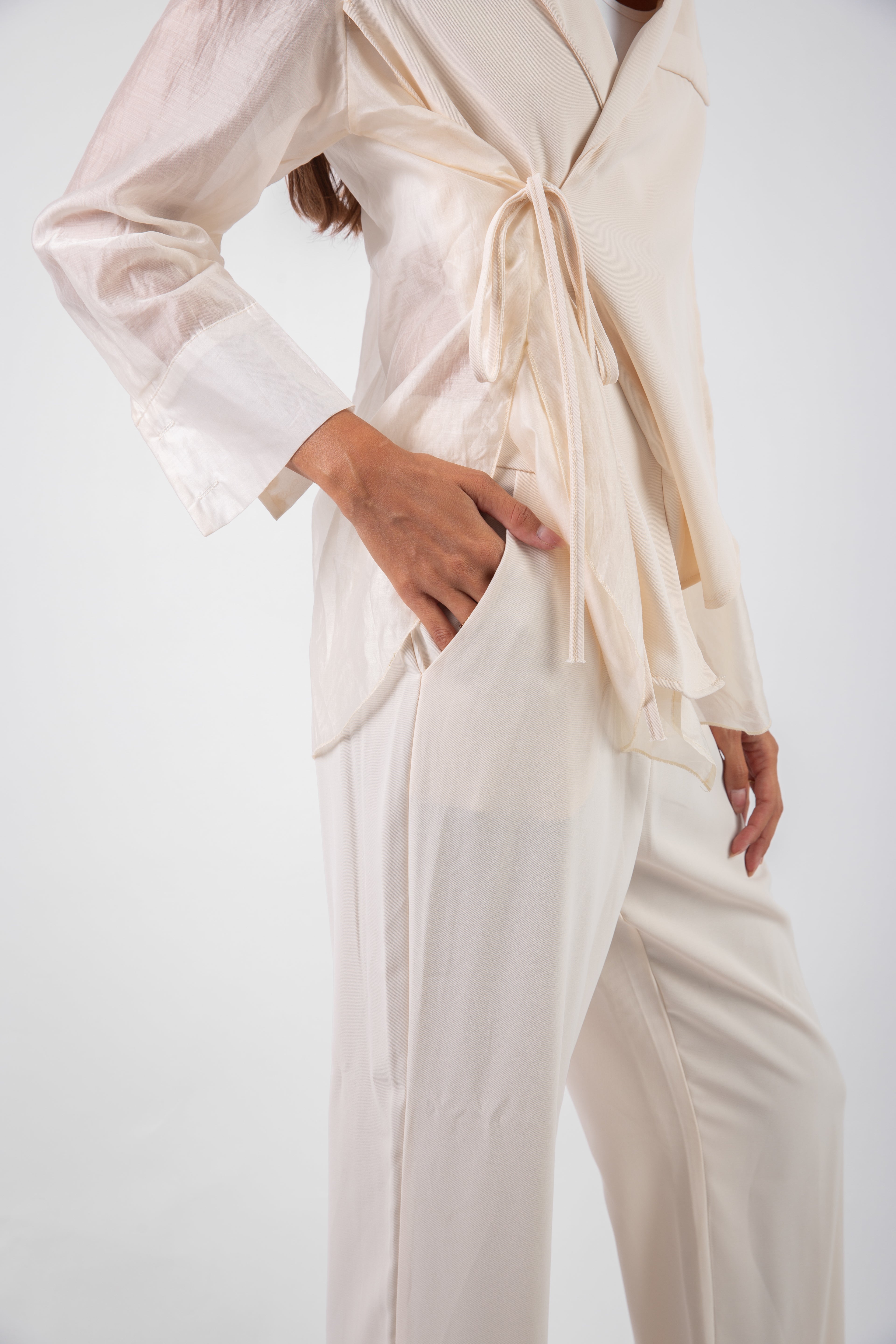 The Whisper Set is made from a blend of soft, lightweight fabrics, offering a smooth touch and subtle texture. Its quiet elegance and easy fit make it a refined choice for everyday wear.